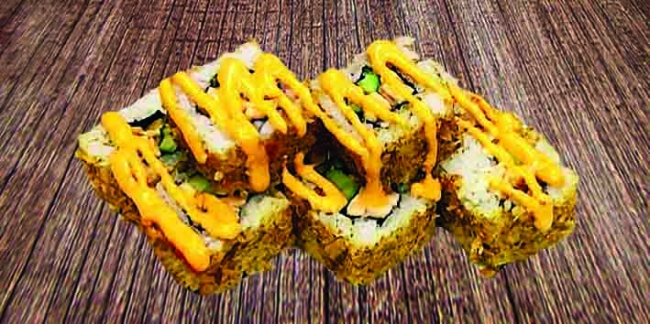 Лосось, огурец, соус спайси, стружка тунца, рис, нори