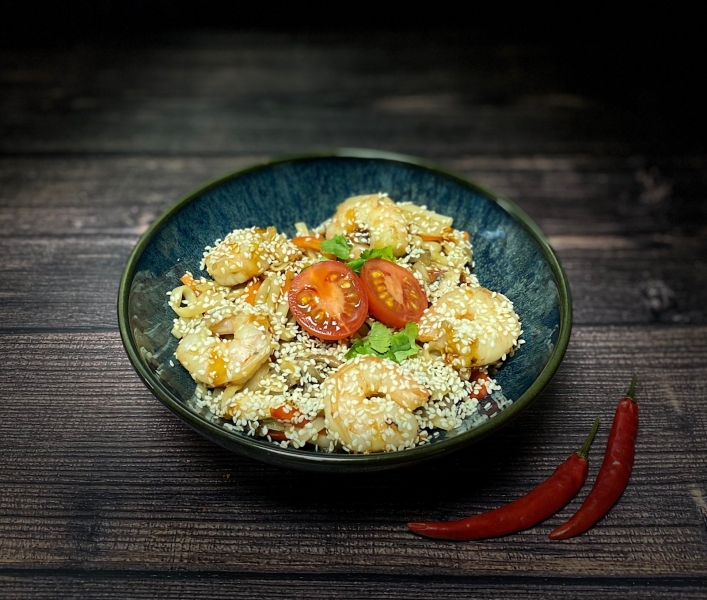 болгарский перец, морковь, соус Терияки, кунжут