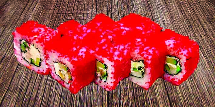 Снежный краб, сыр «Филадельфия», авокадо, огурец, тобико, рис, нори