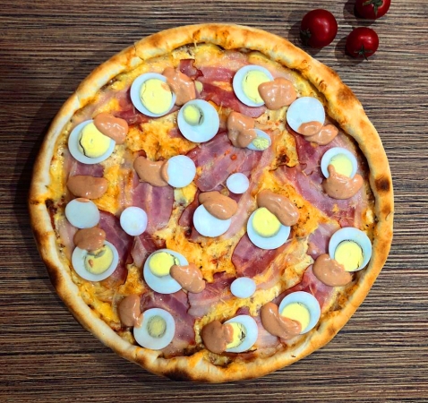 Бекон, яйцо, соус «голландез», неаполитанский соус, гауда