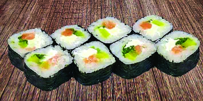 Лосось, сыр «Филадельфия», лист салата, такуан, рис, нори