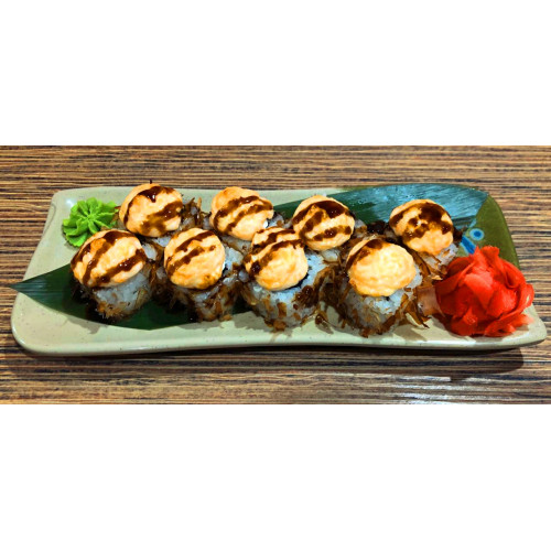 Угорь, сыр Филадельфия, авокадо, огурец, стружка тунца соус Унаги, соус Чиз, рис, нори