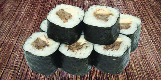 Грибы жареные, сыр Филадельфия, омлет, рис, нори