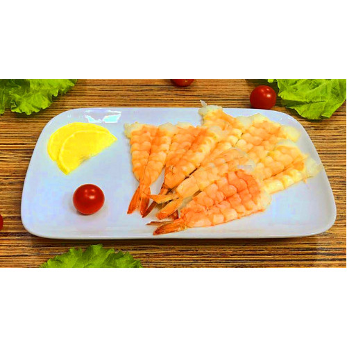Креветка тигровая, помидор черри, лимон