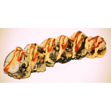 Снежный краб, сыр филадельфия, огурец, соус спайси, кляр, рис, нори